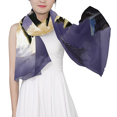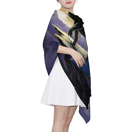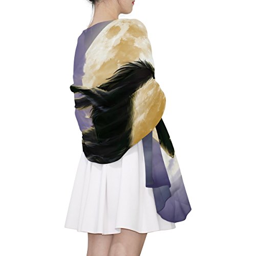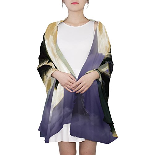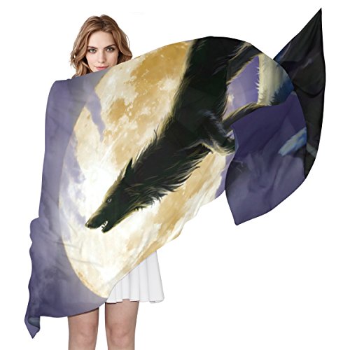 (ALAZA)/Accessories/Cold Weather Accessories/DIRECT FROM USA/Cooper girl Wolf Under Moon Silk Scarf Shawl Wrap for Women Girls