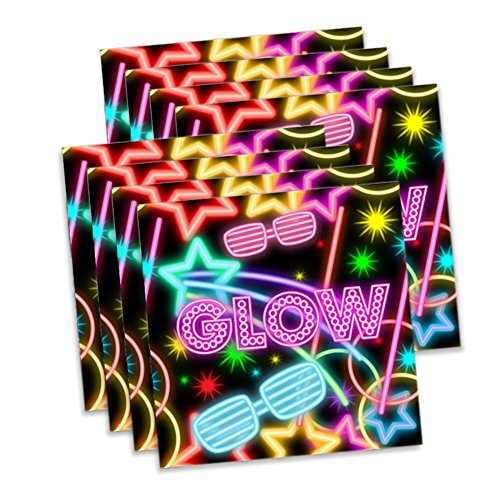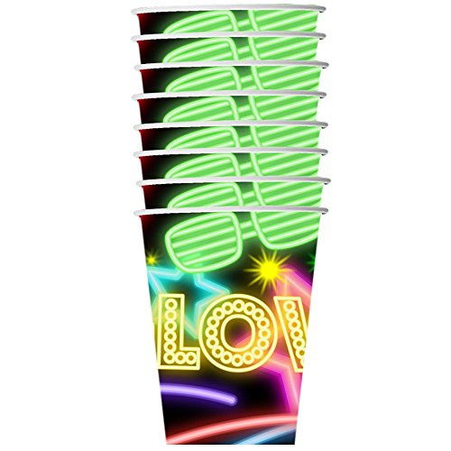 -. Title : Glow Light Neon Birthday Party Supplies Set Plates Napkins Cups Tableware Kit for 16
