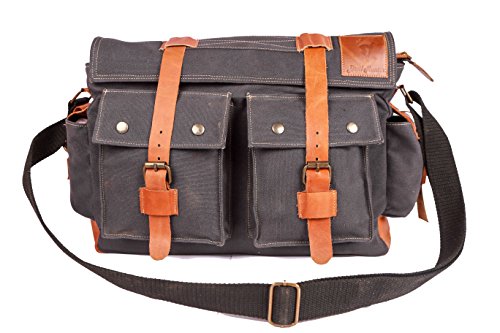 -. Title : Devil Hunter Leather 16" Laptop Canvas Messenger Satchel Bag Grey 16"(L)x12"(H)