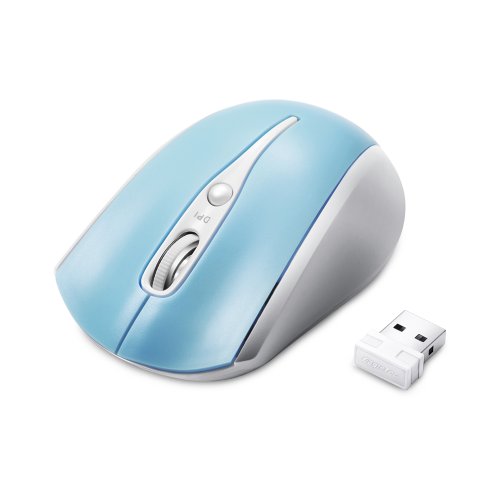 EagleTec MR3M2449 2.4GHz Wireless Optical Mouse, Switchable DPI 1000/1500/2000 with Nano USB Receiver (White + Light Blue Color)