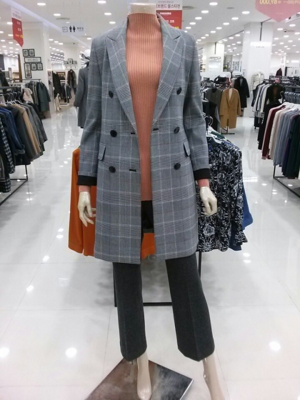 모던한 실루엣에 포멀한 룩부터 캐주얼까지 완벽 소화가능한 하프기장의 체크 더블코트^^