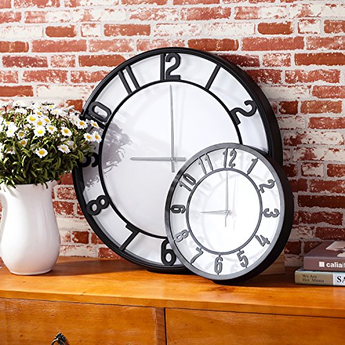 -. Binding : Kitchen -. Brand : Jerry & Maggie -. Label : Jerry & Maggie -. Manufacturer : Jerry & Maggie -. ProductGroup : Home -. ProductTypeName : HOME -. Publisher : Jerry & Maggie -. Studio : Jerry & Maggie -. Title : Jerry & Maggie - Cute 20" & 12" Wall Clock with Glass Shell | White Background | Arabic Numerals Time Indicator Home Decor - Battery Compartment and Wall Mounting Design - Black Frame