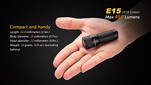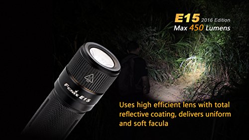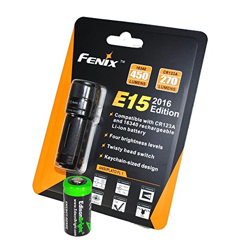 Fenix E15 2016 version 450 Lumen CREE XP-G2 R5 LED EDC Flashlight EdisonBright CR123A Lithium Battery bundle