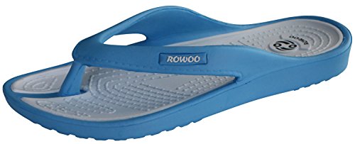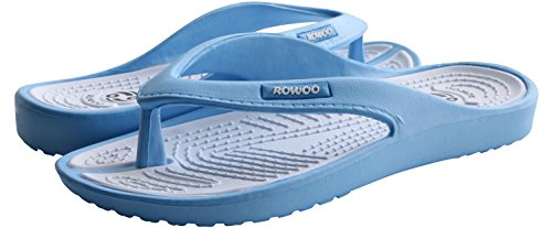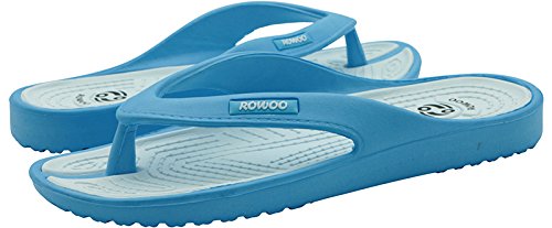 ROWOO Women EVA Toe Post Lightweight Flip Flops Beach Sandals(8 US/39 EU,blue)