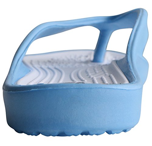 ROWOO Women EVA Toe Post Lightweight Flip Flops Beach Sandals (5 US/36 EU, Blue White)