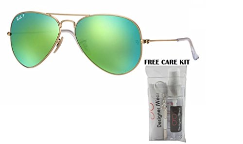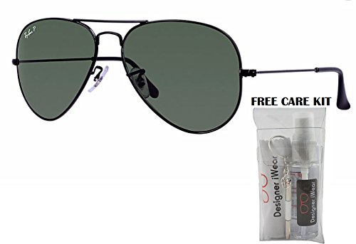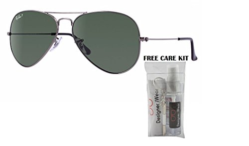 Currently one of the most iconic sunglass models in the world, Ray-Ban Aviator Classic sunglasses were originally designed for U.S. aviators in 1937. Aviator Classic sunglasses are a timeless model that combines great aviator styling with exceptional quality, performance and comfort. With a classic frame, you can see the world through a variety of polarized lens colors including crystal brown, crystal green, G-15 polarized and more that provide optimum visual clarity and 100% UV protection. Let Designer iWear add some instant fun to your wardrobe! This FREE complimentary care kit arrives to you in authentic Designer iWear packaging so you can buy with confidence. This super special kit includes authentic Ray-Ban RB3025 frames, Designer iWear cleaning spray and cloth, mirror and mini screwdriver, to keep your new frames as fabulous as the day you bought them! All Sunglasses Come complete with Original Manufacturers Case, Cloth, and Booklet/Authenticity card when applicable. Please note case style and or color can vary.Feature