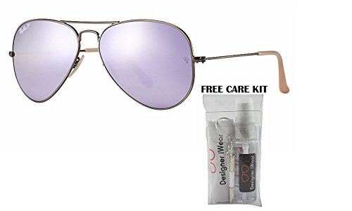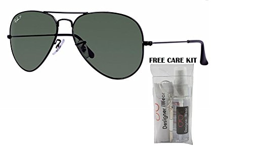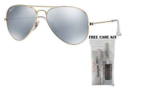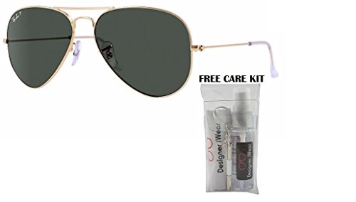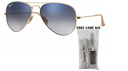 Kit of 2 Items - Includes Ray Ban RB3025 Metal Aviator Sunglasses and FREE eyewear care kit