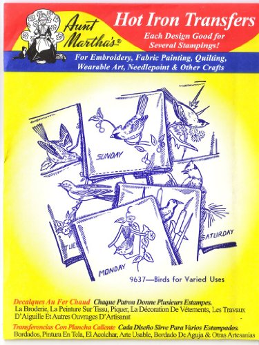 Birds for Varied Uses Aunt Martha's Hot Iron Embroidery Transfer