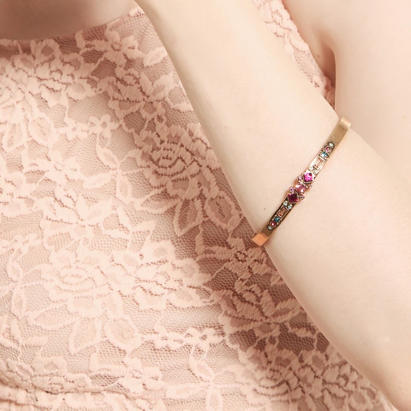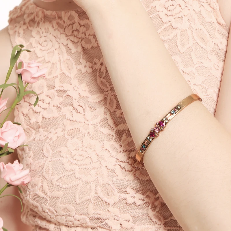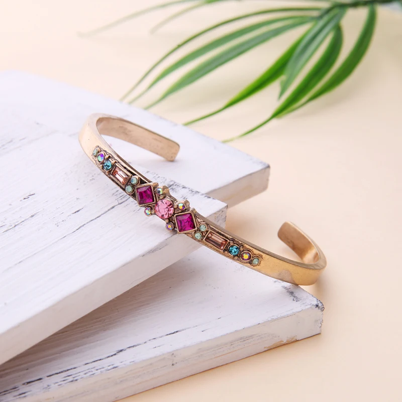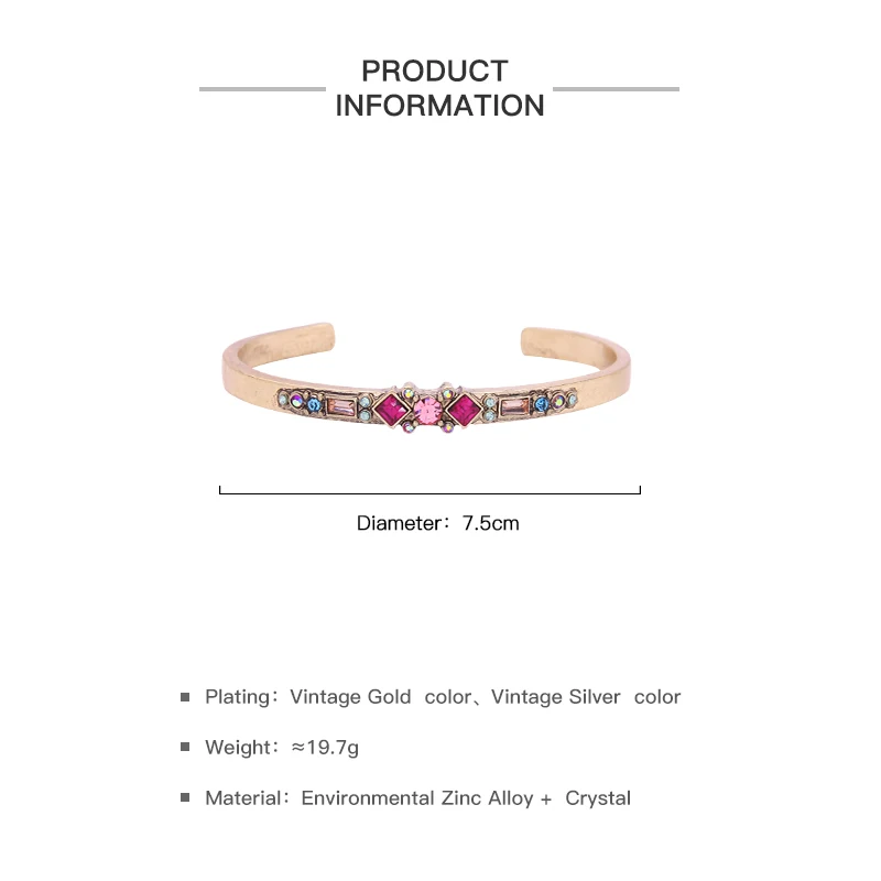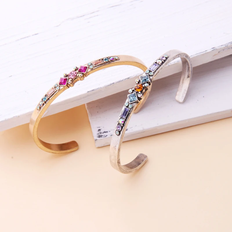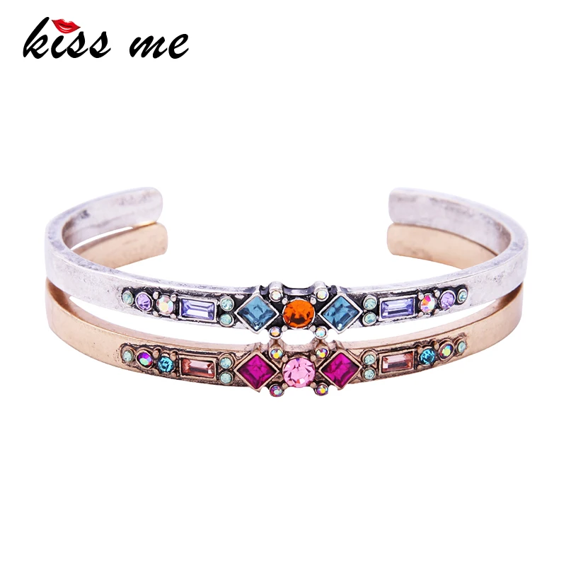 Production name ::KISS ME Antique Gold Silver Color Alloy Glass Crystal Bracelets Bangle