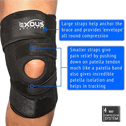 -. Binding : Sports -. Brand : EXOUS -. Color : Black -. Department : unisex -. EAN : 0712324582390 -. Feature : ** SAVE $10 TODAY ONLY ** ✅ A TRUE NON SLIP FIT KNEE BRACE SUPPORT - The unique 4 way compression system 'hugs' your knee from every angle giving lateral and medial support and a sense of real stability for weak knees. Two dedicated patella straps give patella tendon and jumpers knee pain relief and helps stabilize the knee cap / ✅ CONFIDENCE & IMPROVED MOBILITY - The special design keeps the knee brace in place meaning less irritaion less adjusting and real 'functional support throughout the day. ** fitting max calf size 16.5 inches MAX UPPER THIGH 20 INCHES (measure 3" above knee) ** / ✅ FOR RUNNING & SPORT - STAYS IN PLACE - Typical generic knee braces have only 2 or 3 straps they often move and slip almost in minutes making them very annoying and alomost useless for sport or to exercise with Enjoy added comfort and a non-slip use with the 4 point strap system ** fitting max calf size 16.5 inches MAX UPPER THIGH 20 INCHES (measure 3" above knee) ** / ✅ ALL DAY COMFORT AND PAIN RELIEF - Our brand mission is 'different by design' we designed this from the ground up proud to have over 1100 positive reviews form helping you to get up stair cases, playing a game of tennis and even helping you complete a run with less pain. Read the comprehensive reviews and see how this knee brace may be right for you ** fitting max calf size 16.5 inches MAX UPPER THIGH 20 INCHES (measure 3" above knee) ** / ☞ LOVE IT OR YOUR MONEY BACK - What we know based on over 2 years of sales and thousands of happy customers is that if you fit within the size guide, we are confident this is the best support you will get for your knee. If you feel it's not for you contact us directly and we will look after you no matter what. Join thousands of happy customers that have seen the EX-701 improve their quality of life - fitting: max calf size 16.5 inches MAX UPPER THIGH 20 INCHES (measure 3" above knee) -. IsAutographed : 0 -. IsMemorabilia : 0 -. Label : EXOUS -. Manufacturer : EXOUS -. MPN : FBA_EX-701 -. NumberOfItems : 1 -. NumberOfPages : 0 -. PackageQuantity : 1 -. PartNumber : FBA_EX-701 -. ProductGroup : Sports -. ProductTypeName : SPORTING_GOODS -. Publisher : EXOUS -. Size : One Size -. Studio : EXOUS -. Title : EXOUS Knee Brace Support Protector - Relieves Patella Tendonitis - Jumpers Knee Mensicus Tear - ACL Lateral & Medial Ligament Sprains Comfort Design TRUE NON-SLIP FIT For Arthritis - Sport - Running -. UPC : 712324582390