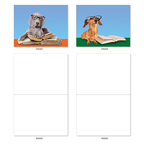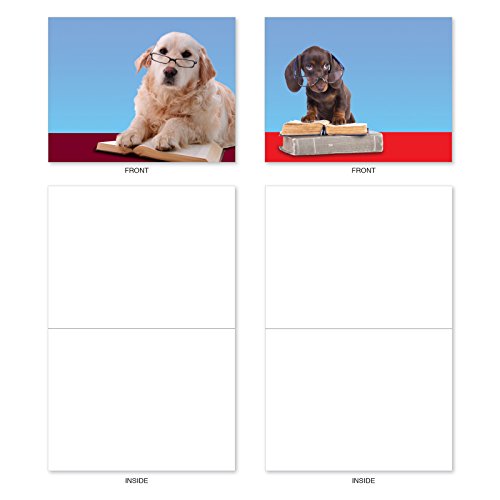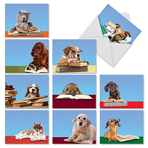 Studio : NobleWorks Publisher : NobleWorks Binding : Office Product Product Description These unique note cards are packaged in a complementary-themed set featuring 10 carefully edited, gallery-quality assorted images, each different yet closely related. We offer a broad collection of everyday and seasonal designs, presented in a wide variety of artistic styles. Available blank or with a greeting, this versatile note card set is printed in the U.S. on high-quality, recycled stock and packaged in a design-specific and color-coordinated custom box featuring a visual reference of the entire series contained within.10 Assorted Thank You Note Cards Featuring Book Smart Puppies Wearing Eyeglasses, with White Envelopes. These delightful note cards don't compromise the high standards, attention to detail and production quality our company has been known since 1980. Each of the assorted series packs in 10 fabulous, theme-related designs intended to deliver a beautiful stationery set and a big bang for your buck. Most designs are available blank or with a greeting; these versatile note cards are a great and easy way to correspond. The Best Card Company - and NobleWorks - is a small, family-owned business, and while our online Amazon store is how you came to know us, our iconic, signature line of humorous, funny cards and beautifully designed boxed note card sets have been for sale in select brick-and-mortar stores for years. 0