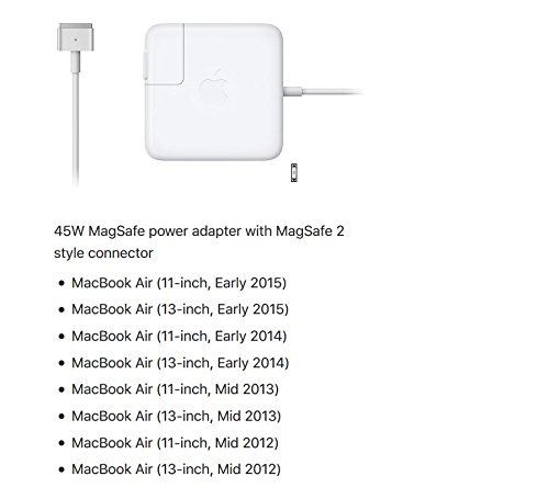 Apple 45W MagSafe 2 Power Adapter for MacBook Air MD592LL/A (Newest Version)