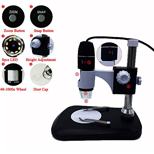 USB Digital Microscope Camera, Jiusion 40 -1000X Portable Magnification Endoscope 2 Million Pixels 8pcs LED with Adaptor Professional Stand, Compatible with Mac Window XP 7 8 10 OTG Android