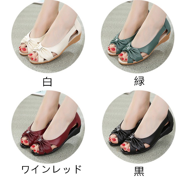 ●商品写真はできる限り実物の色に近づけるよう加工しておりますが、お客様が使用するパソコンのモニター設定や部屋の照明により多少、色の変化が感じられる場合がございます。予めご了承ください。★商品情報★素材:合成皮革 ヒール高さ:4cm 生産国:中国 カラー:白/緑/ワインレッド/黒(写真参考)★サイズ:35(22.5cm)36(23cm)37(23.5cm)38(24cm)39(24.5cm)40(25cm)※ サイズは平置き、メジャー採寸を行っております。実寸は商品によって(0.5 cm前後)に誤差が生じる場合がございますがので、予めご了承くださいませ。