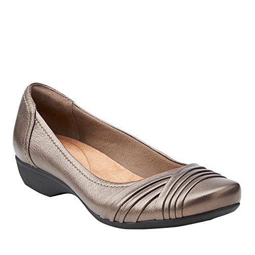 Slip on a sweet alternative to a heel. This women's shoe cushions each step in comfort, thanks to Bendables flexible construction in extra-soft suede and an OrthoLite footbed. Distinctive in pewter metallic suede, it's a go-with-everything style to wear with dresses, skirts, or jeans.