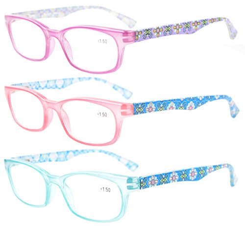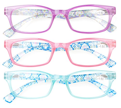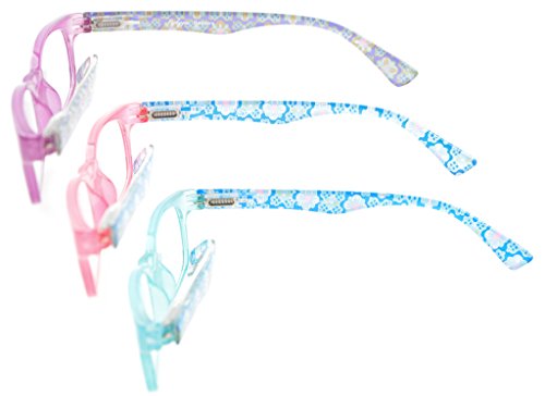 Eyekepper Reading Glasses 3 Pack With Purple, Pink, Blue Style Look Crystal Clear Vision comfort Spring Arms Include Case Cloth +0.75