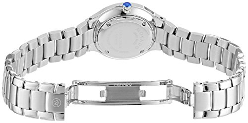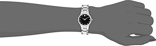 - Feature : Round dress watch in silver-tone stainless steel with black dial featuring diamond-accented bezel and hour markers / Swiss-quartz movement with analog display / Protective synthetic-sapphire crystal dial window / Features deployment-clasp closure / Water resistant to 99 feet (30 M): withstands rain and splashes of water, but not showering or submersion