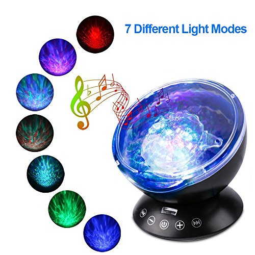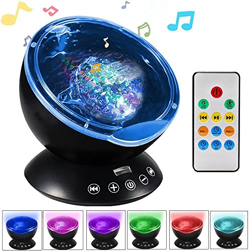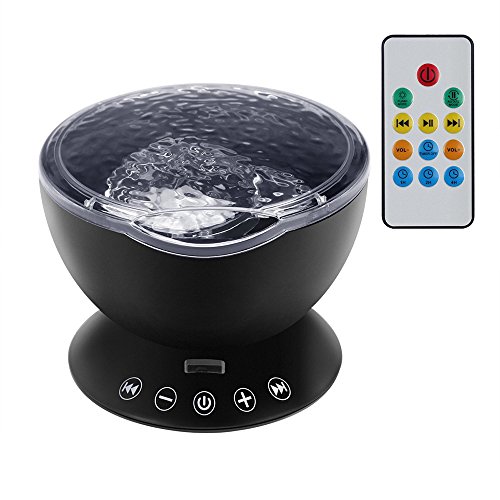 KBAYBO Remote Control Ocean Wave Projector 12 LED &7 Colors Night Light with Built-in Mini Music Player for Living Room and Bedroom (Black)