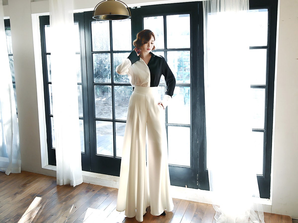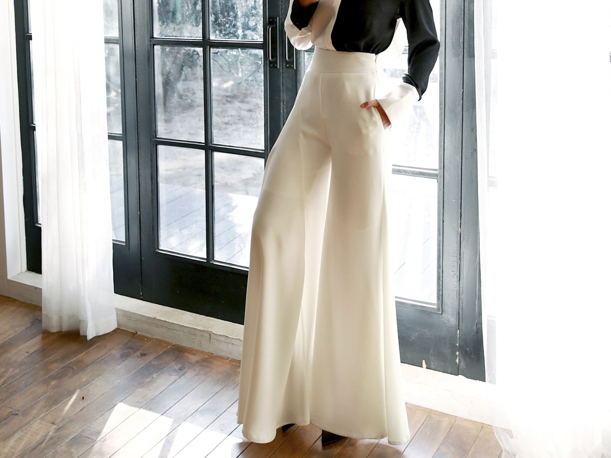 P1605 에드로 언발런스 훌 슬랙스 Ivory