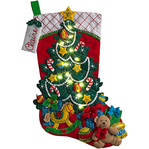 Bucilla 18-Inch Christmas Stocking Felt Appliqué Kit, 86710 Christmas Tree Surprise