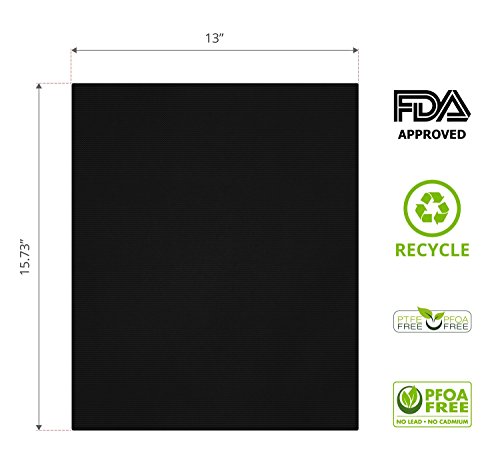 - ✅SAFE TO USE & PROLONG THE LIFE OF YOUR GRILL EQUIPMENT: This set of three 15.75" x 13" double-sided, FDA approved, food-grade, reusable mats are made from heavy duty, 0.03mm extra thick PFOA-free PTFE-fiberglass coated fabric that makes grilling a dream! FDA approved, burn proof, fire resistant up to 500°F, and free from harmful chemicals. The mats will never retain odors or tastes from previous BBQs. Keep your grill looking brand-new and lasting much longer, no more clean-up of a dirty grill.