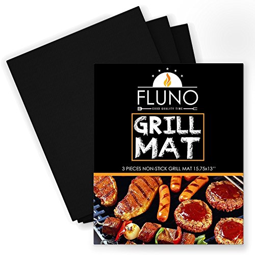 FLUNO Grill Mat-Set of 3 - Heavy-Duty, Non-Stick Grilling Sheet, Durable Mat, Reusable, Easy To Clean, PFOA Free, FDA Approved, 15.75x13 Inches -1 Year Warranty-Black