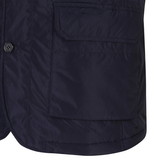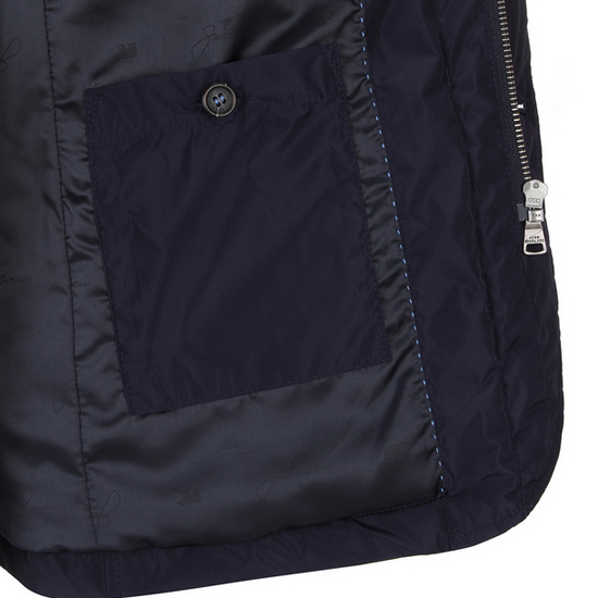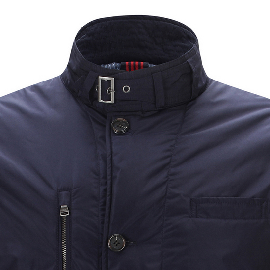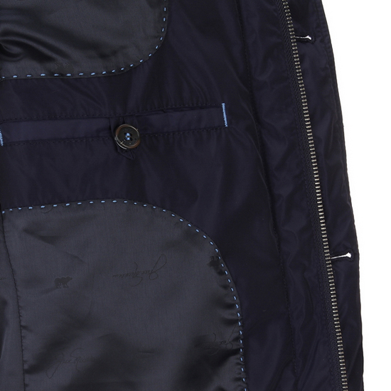 - 네크라인의 비조 장식과 가슴판 웰트 포켓으로 클래식함.