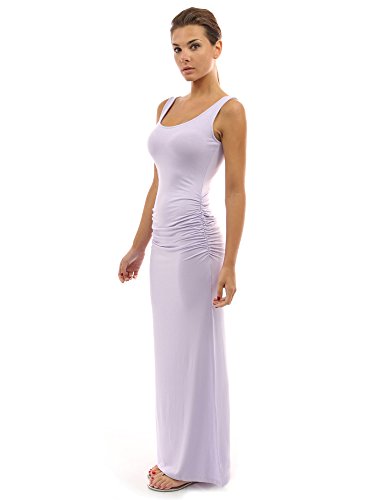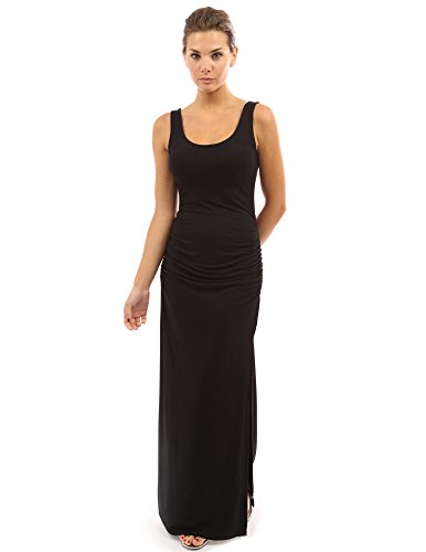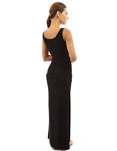 PattyBoutik Scoop Neck Runched Sleeveless Tank Spring Summer Beach Sun Maxi Dress. Model in pictures is 5 feet 8-10 inches (173-178 cm) tall wearing size S and a pair of flat sandals.