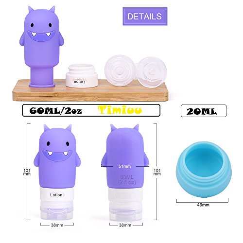 Leak-proof Travel Bottles Set, Timiuu 6-Pack 2 oz TSA Approved Silicone Cute Monster Travel Bottles, 20ml Cosmetic Containers With Sealed Lids for Shampoo,...