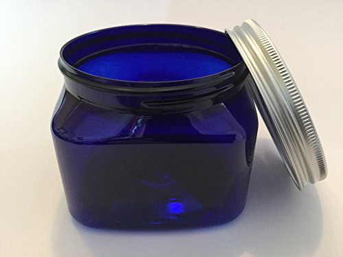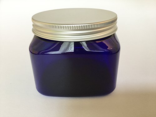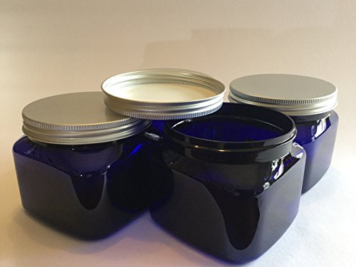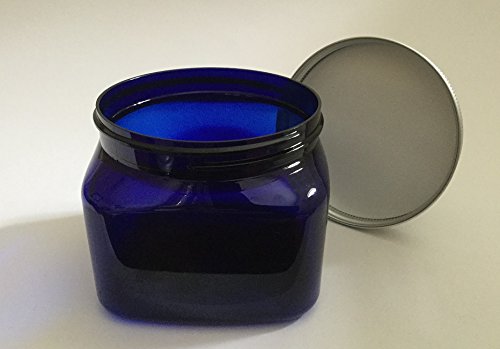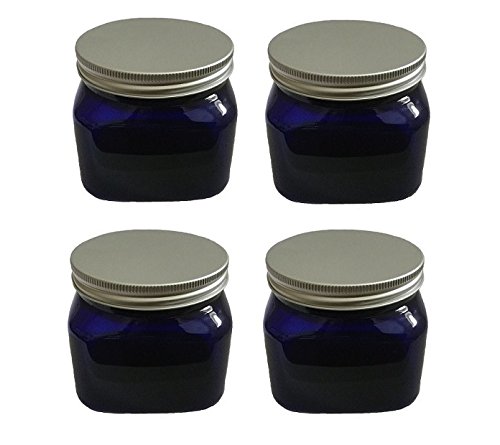 Plastic Blue PET Square Jar 16 oz with Silver Aluminum Lined Lid (Pack of 4)