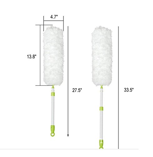 ● Descriptions: 1. Microfiber feather duster,anti-static, flexible, easy to absorb dust, bendable,so it permits dusting around hard-to-reach multiple angles objects and fixtures. 2. Dismountable, extendable, durable. very easy to clean by water. 3. Comfort grip handle,can be hang up with the hole. 4. Large microfiber head covers a large surface with every swipe. Non-slip grip. 5. Appearance: green and exquisite,suitable for househood,office use,car use,etc. 6. Flexible,Environmental protection ● Specifications: ?- Material:Fiber ?- Size:0.85x0.12m/2.8x0.4inch ?- Max Length: 85cm/33.5inch; Width of head: 12cm/4.7inch ?- Color:White with Green ● Package included: 1x Handle 1x Wool fiber ● Please allow 1-2cm differs due to manual measurement, thanks.