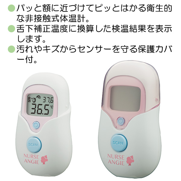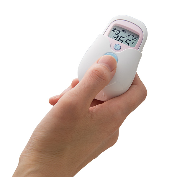 ●パッと額に近づけてピッとはかる衛生的な非接触式体温計。