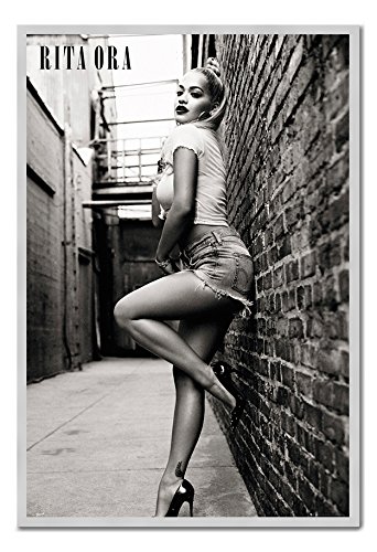 -. Title : Rita Ora Leaning Against Wall Poster Magnetic Notice Board Silver Framed - 96.5 x 66 cms (Approx 38 x 26 inches)