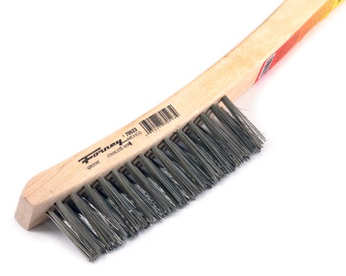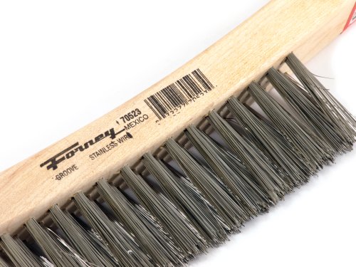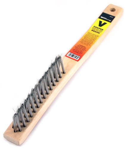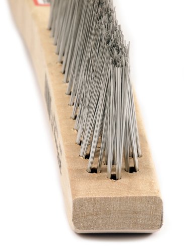 Forney 70523 Wire Scratch Brush, V-Groove, Stainless Steel with Wood Handle, 13-3/4-Inch-by-.014-Inch