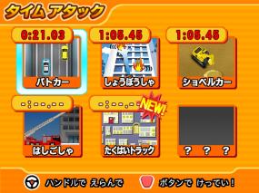 9種類のおしごとチャレンジや、タイムアタック、ドライブが楽しめます。運転できる車種は全部で60台