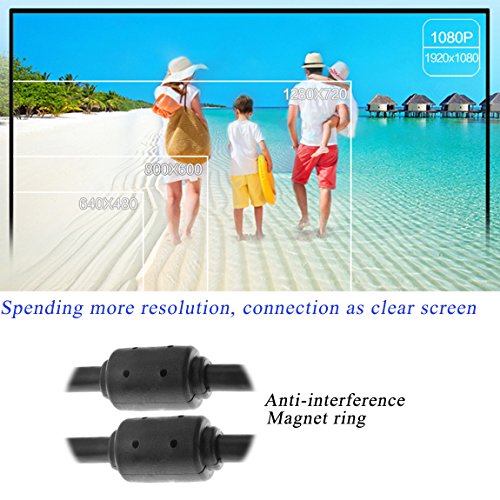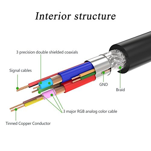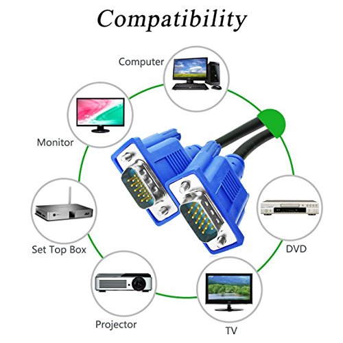Foil braid shielding and integrated dual ferrite cores on the VGA wire minimize crosstalk, suppress noise, and protect against electromagnetic interference (EMI) and radio frequency interference (RFI) Supports resolutions at 800x600 (SVGA), 1024x768 (XGA), 1600x1200 (UXGA), 1080p (Full HD), 1920x1200 (WUXGA), and up for high resolution LCD and LED monitors Best of all, the extra-long cable gives you the freedom to make long connections for easy hookup in your home theater, home office, or large meeting rooms.