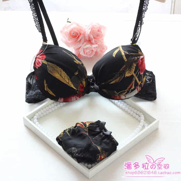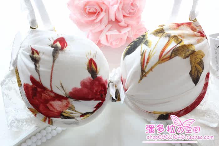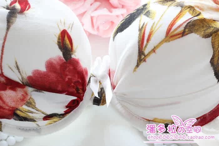 Items: + underwear bra Ingredients: underwear dear surface and pants crotch for cotton Insert: can insert a tab Shoulder / Rim: detachable shoulder strap / adjustable length / steel /2breasted Thickness: with cotton pad thickness of about 1 cm / underwear itselfaround 1.5 cm Underwear: all hip 28 (95 cm) for Very beautiful folk style Rose Print super beautiful sexy Strongly recommended!!!