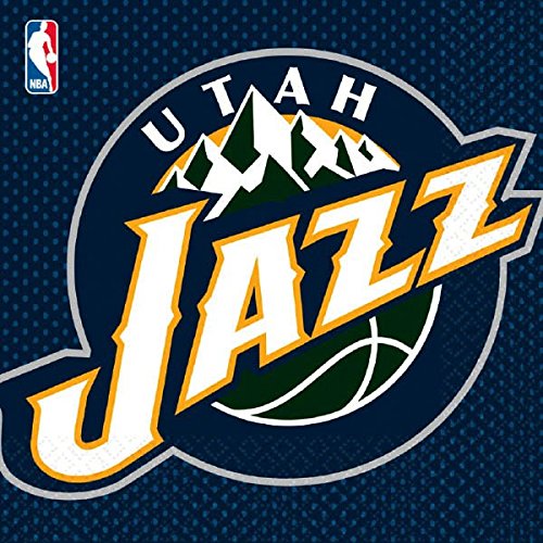 - These officially licensed NBA napkins feature the Utah Jazz logo against a navy blue background.
