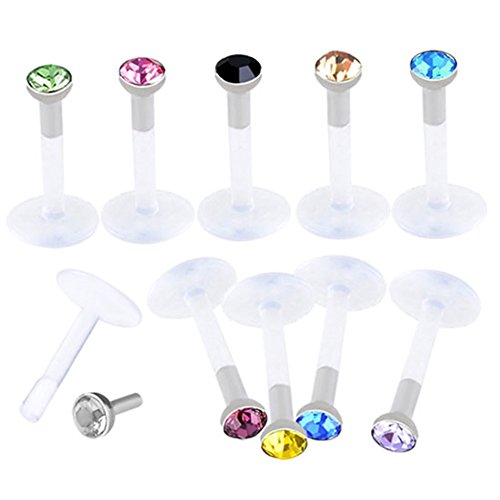 JOVIVI 10pcs Mixed 16G Acrylic CZ Gem Labret Stud Monroe Bar Lip Rings Stud Piercing Punk (White)