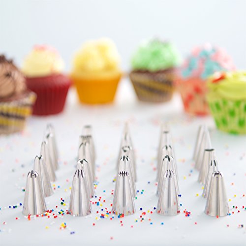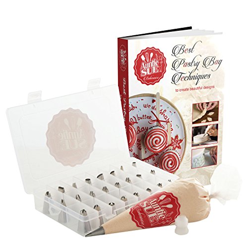 CAKE DECORATING TIPS - 37 PIECES TOTAL - Professional Pastry Piping Set Stainless Steel + Coupler + Storage Case + 10 Disposable Cake / Cupcake Bags For Baking Supplies - by Auntie Sue Bakeware