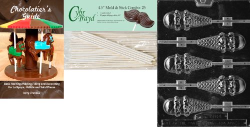 Cybrtrayd 'Double Dipper Lolly' Kids Chocolate Candy Mold with 25 4.5-Inch Lollipop Sticks and Chocolatier's Guide