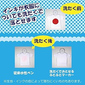 ・インキが衣服についても洗たくで落とせる※生地・インキの色によっては落としにくいものもある