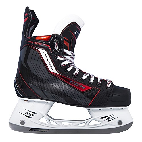 Studio : CCM Publisher : CCM Binding : Misc. Product Description We have partnered up with CCM to bring you a completely original skate. Excluse to StraussHockey the CCM JetSpeed Vibe skate combines the best elements of the JetSpeed Pro, JetSpeed 300 and JetSpeed 290 into one skate. This unique mash-up gives you the benefits of a pro level skate at a performance skate price. The Speed Blade Hyperglide blade provides a harder, longer lasting edge for added durability. The Pro Moose Suede liner increases comfort, while the Smooth Contour comfort pad enhances the overall life of the skate. Designed for ultimate speed, the high definition contoured boot shape provides a fit which wraps closely around every segment of your foot. The result is a fit to help generate more efficient power and performance with every stride. 0