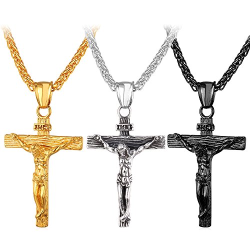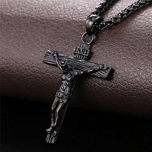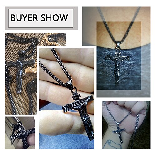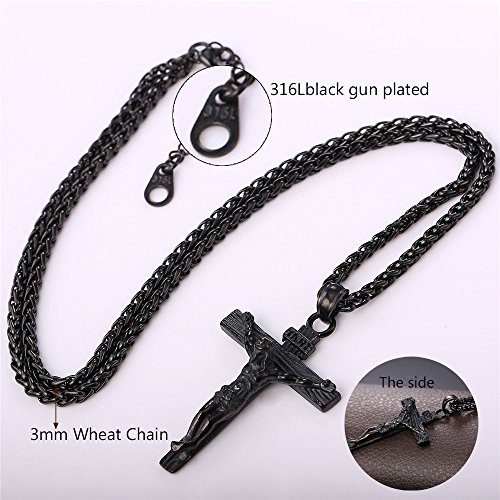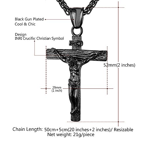 INRI Cross pendant size: 2 inches. Chain: 3mm wide wheat chain,20 inches +2 inches extending chain.