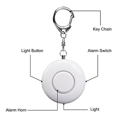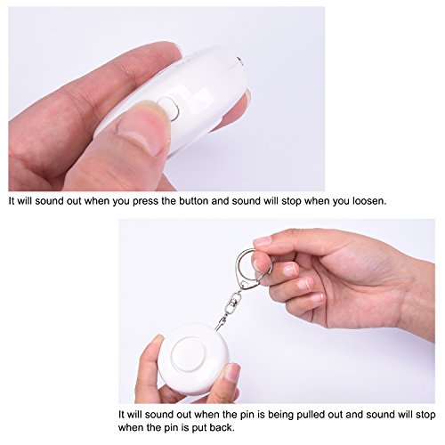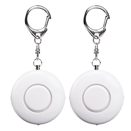 Quantity: 2 pieces; Personal alarm keychain in small size, lightweight and portable, can be attached to backpack, belt loops, suitcases, etc.
