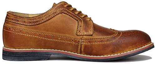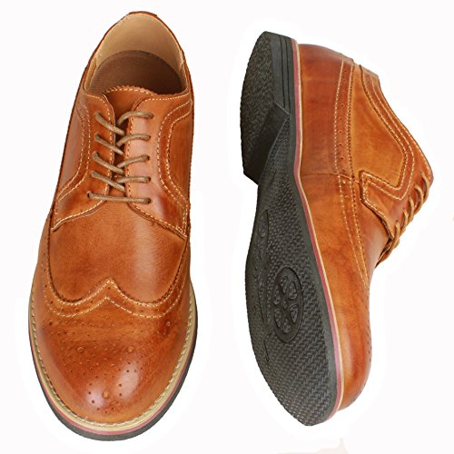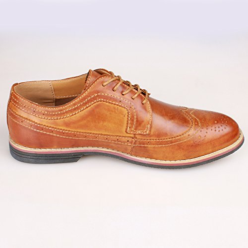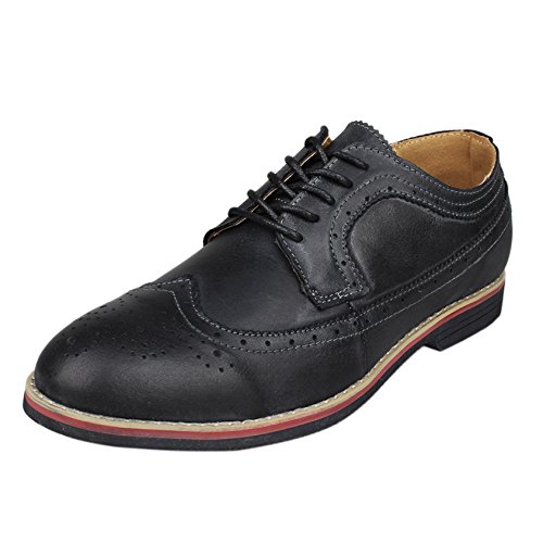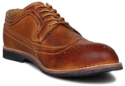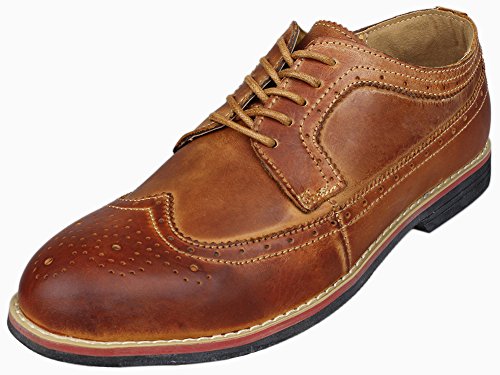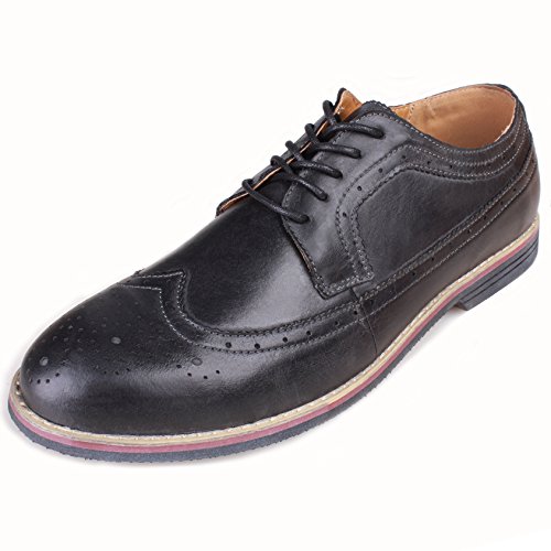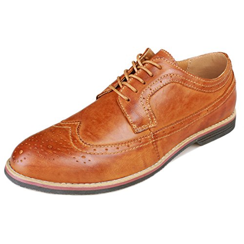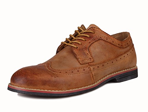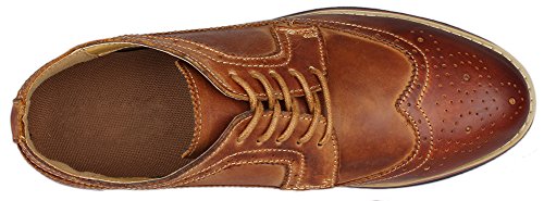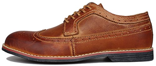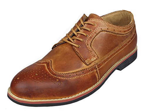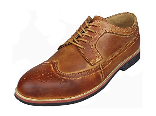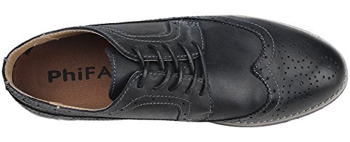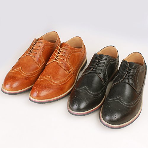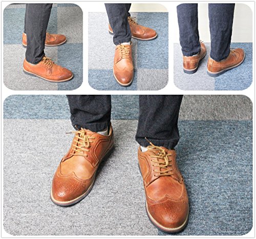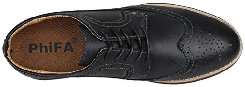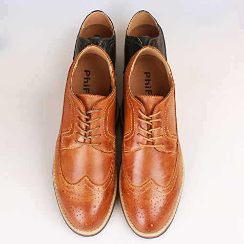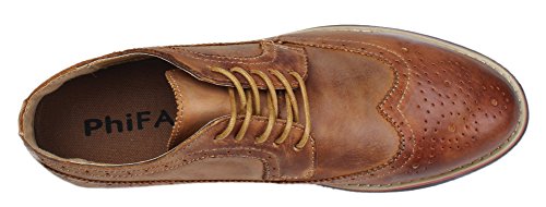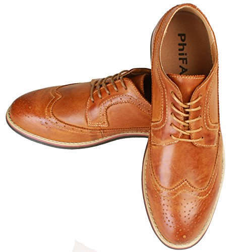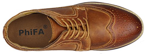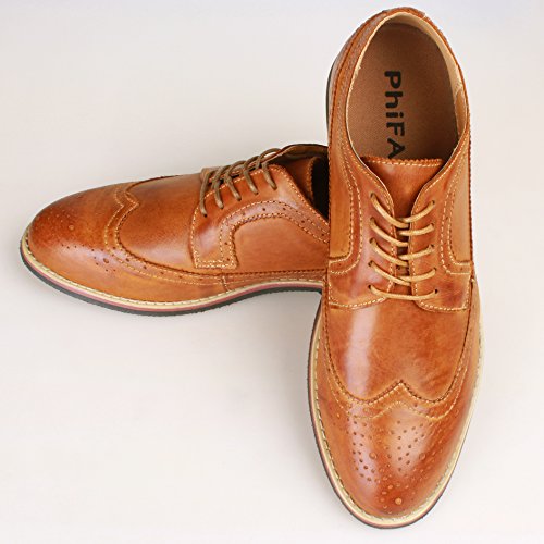 Binding : Apparel Product Description The PhiFA Men's oxfords wingtip offer a classic look with ergonomic design to provide the optimum comfort and to avoid stress or injury in walking. It's great to dress with a shirt for almost any occasion, whether formal or just casual. what's more, the waxed laces allow me to have looser laces across the top of my lower foot, and tighter up above where the ankle is. This is extremely comfortable. Full Brogue Detailing The leather lining inside is pretty soft and there is enough arch support as well. Upper material : Distressed color Leather Lining Material: Mesh and Leather Sole: Synthetic Footbed: Fixed footbed Out sole: Flexible slip resistant Rubber out-sole Heel type: Low-heel Width: D "" All the shoes sizes have been converted to US Size, wish you have a great buying experience 0 |