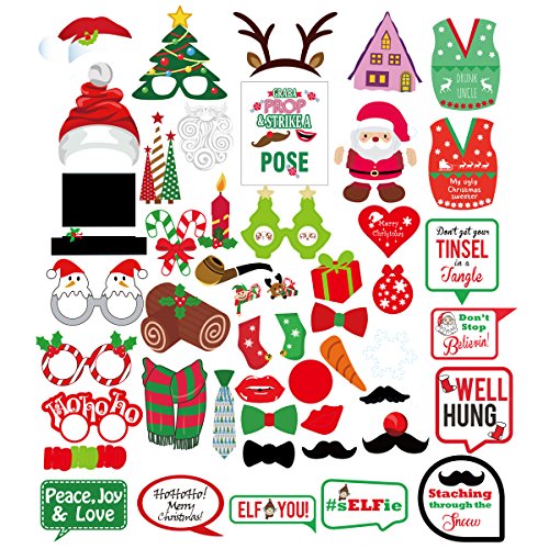 - Material: durable cardstock, wood. - 100% brand new and high quality Christmas Party Photographing Photo Booth Props. - Mainly includes moustaches, eye glasses, red lips, Christmas hats, bowknot and etc. - Enjoy the fun time with your friends by providing them these funny photo booth props. - Great for use in Christmas party or any other festival parties, to enjoy the fun time with your friends. - Different photo booth props for different DIY photographing.
