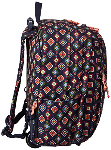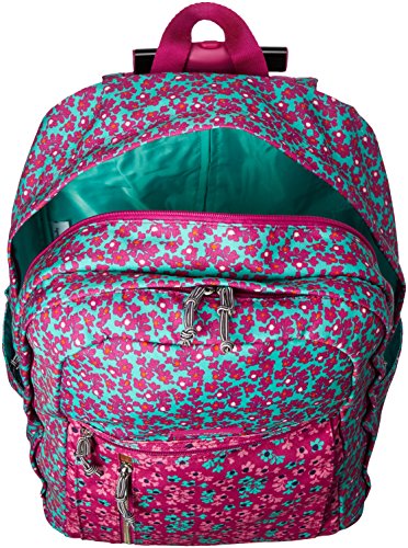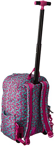 Product DescriptionThis favorite backpack style is offered with wheels! the straps tuck away when not in use, and a telescoping handle pops up to make this backpack into a bag on wheels.0