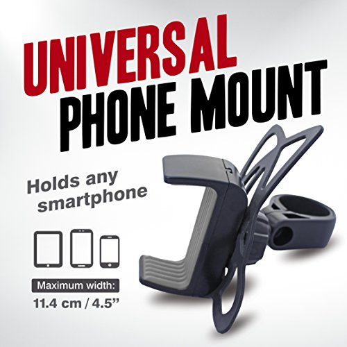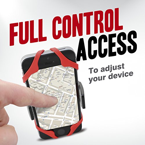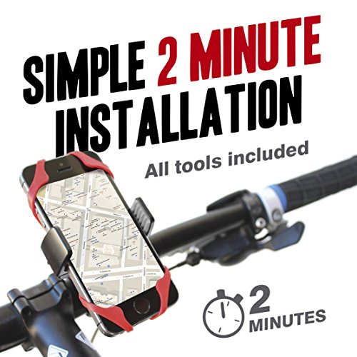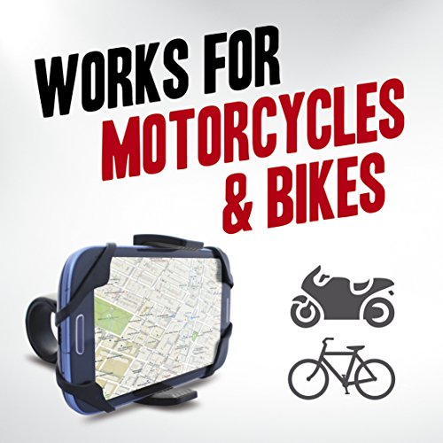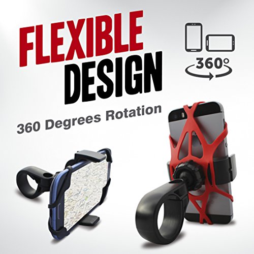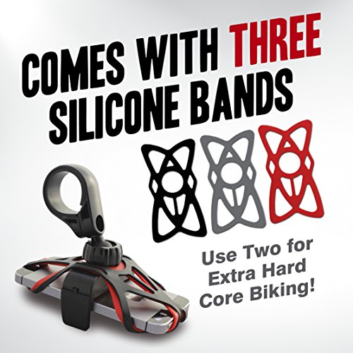 - Feature : ✓ UNIVERSAL PHONE MOUNT automatically fits any smart phone and device up to 4.5" wide and fits motorcycle and bicycle handlebars 0.9" to 1.5" diameter. Holds iPhone 6, 6 Plus 5 5S 5C 4 4S, iPod Touch, Samsung Galaxy S6 S5 S4 S3, Note 1, Note 2, Note 3, Note 4, LG G4 HTC One Nokia Lumia Google Nexus Sony Xperia GPS, Blackberry z10, MX2 3, Motorola Droid RAZR / MAXX, HTC EVO 4G, HTC One X, LG Revolution, GPS Holder and More! / ✓ EXTRA SECURE strong adjustable clamp with silicone band grips device firmly and is flexible to hold hones up to 5.5" including case. This thing holds tight, do your best to get the phone to fall out, it won't! / ✓ FLEXIBLE DESIGN simply rotate and adjust your device to any angle and position that suits your preference whit the special ball and socket design / ✓ FULL PHONE ACCESS to your entire phone screen, buttons and mic jack too, unlike annoying sleeve designs that require you to remove your device to use it. / ✓ THREE SILICONE BANDS - comes with total of three silicone bands (black, red, grey) so you can choose colors and have backup bands if you need them. QUICK RELEASE Clip on and off design makes it the easiest bicycle phone holder available