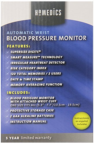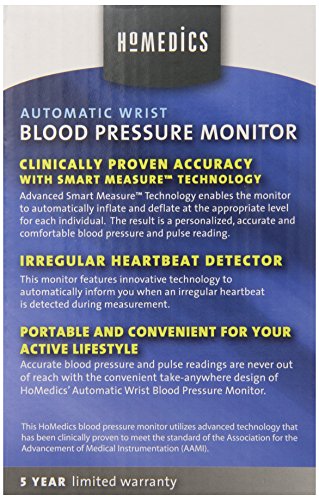 -. Title : HoMedics BPW-201 Automatic Wrist Blood Pressure Monitor with Supersize Digits, Smart Measure Technology and Irregular Heartbeat Detector